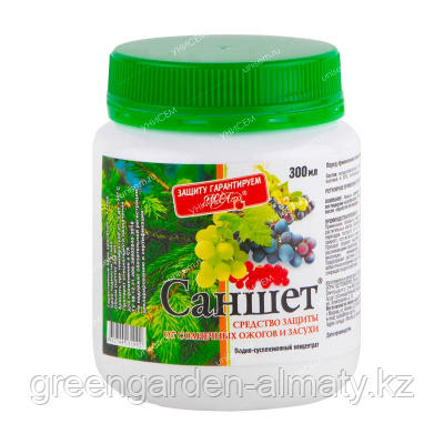 Водно-суспензионный концентрат для защиты растений от солнечных ожогов и засухи. Применяется для декоративных деревьев и кустарников, декоративно-цветущих растений, винограда и ягодных кустарников, газонных трав. Препарат снижает тепловой стресс и повреждение растительных клеток, обеспечивает лучшую приживаемость после пересадки, положительно влияет на рост и развитие растений, способствует защите от солнечной инсоляции, минимизирует образование солнечных ожогов.